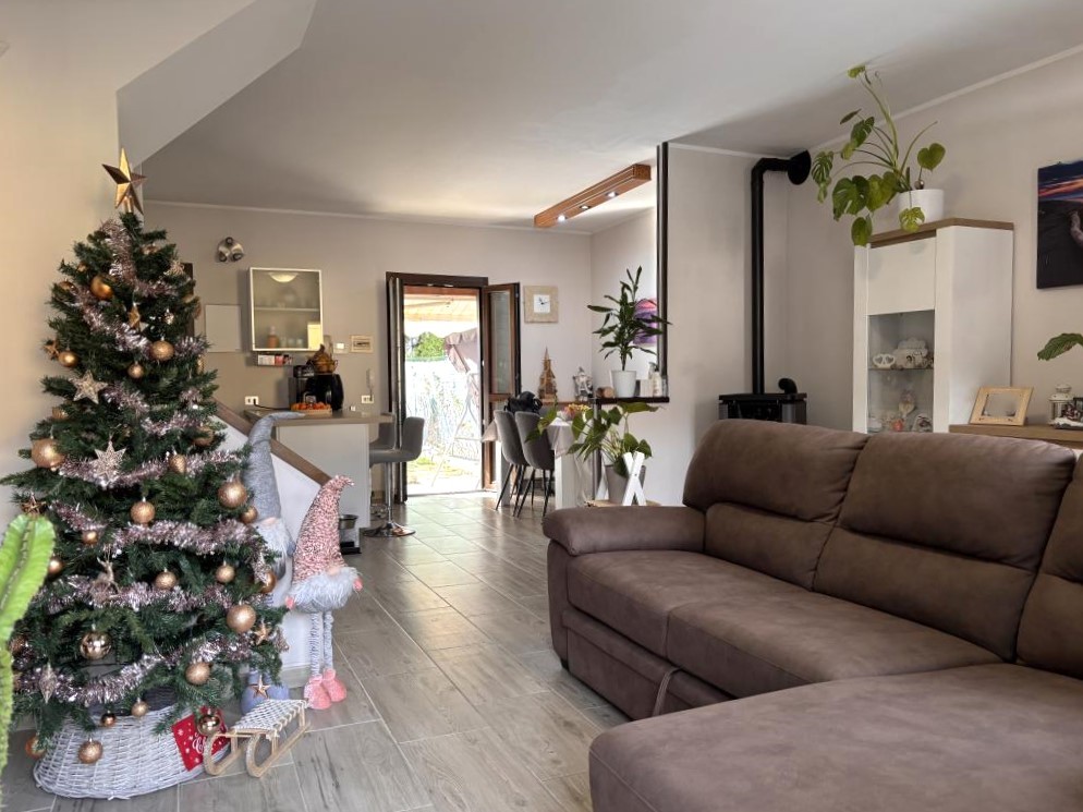 A few years ago, the house underwent modernization work: the flooring in the living area was replaced, the windows were changed, a new fully independent gas heating system was installed, and the first-floor bathroom was renovated.