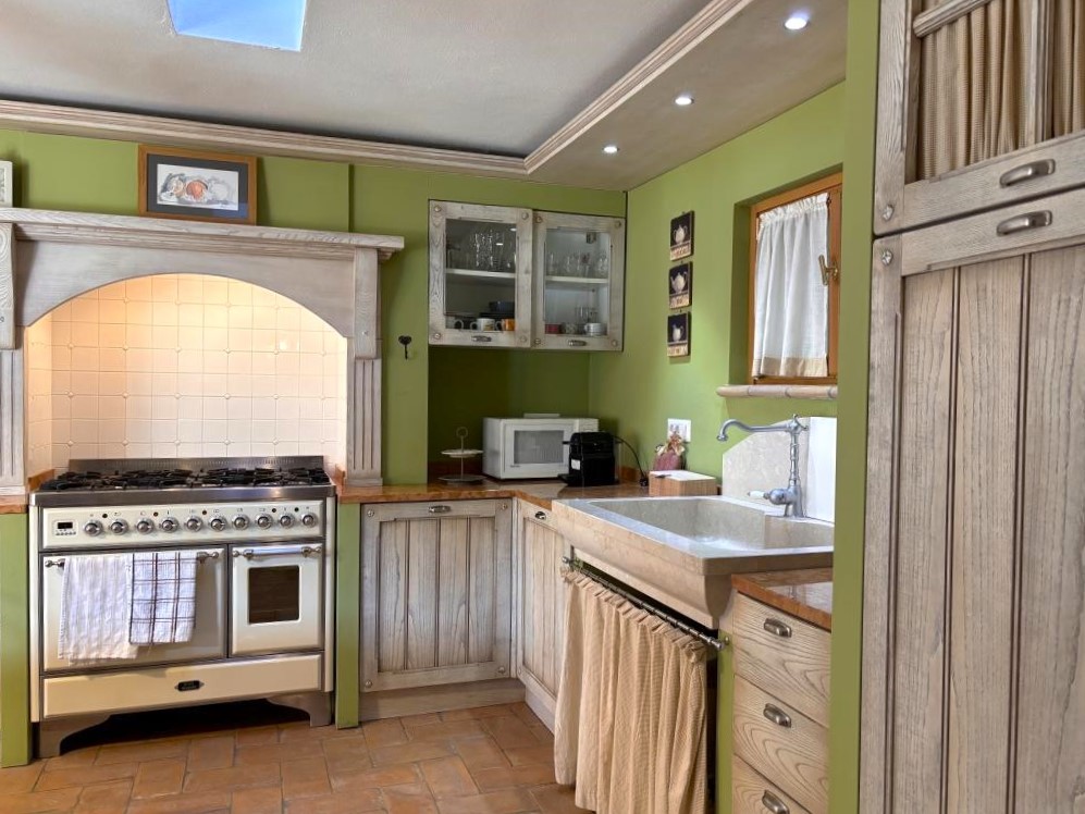 • cucina professionale completamente attrezzata (fuochi inox e doppio forno)